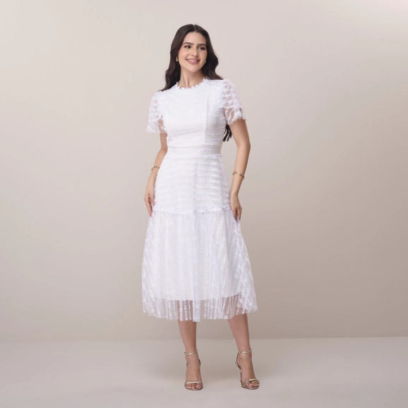 Vestido Lucilene Em Tule Bordado Off WhiteTatá Martello