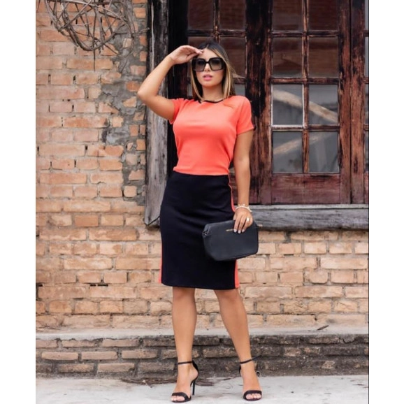 Vestido Malha Canelada Laranja, confeccionado em malha canelada, possui bolso lateral, detalhe em tule no ombro. Os vestidos mais confiortáveis e estilosos você só encontra em nosso site! -