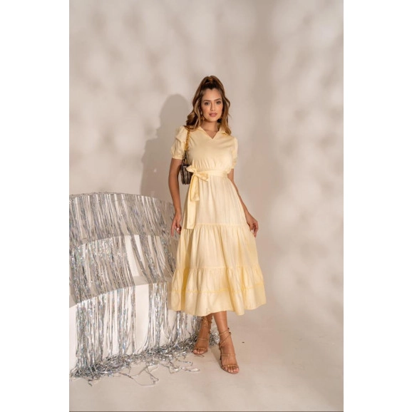 Vestido Manu Jeans Midi Amarelo Candy Fagian