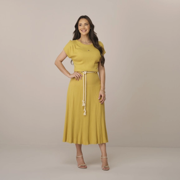 Vestido Manuela Em Malha Volare Mostarda Tata Martello