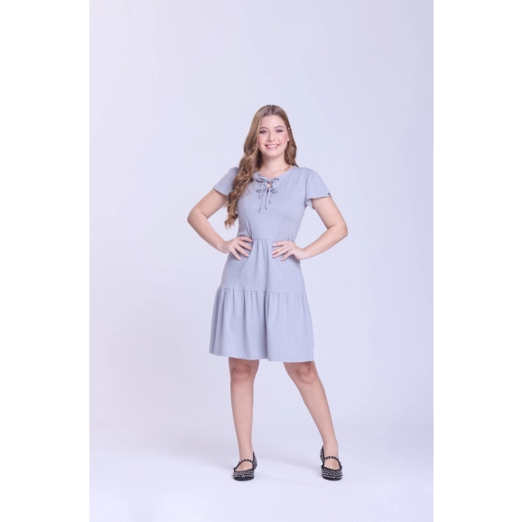 Vestido em malha de algodão sustentável, decote redondo com viés e ponteiras, mangas curtas e sem forro.