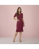 Confeccionado em malha canelada, forrado, decote arredondado, saia com detalhe drapeado com amarração, babado na barra.