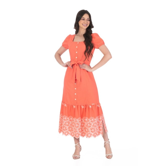 Vestido confeccionado em linho, com botões funcionais e acompanha faixa. Composição vestido 35% poliéster 30% viscose 20% linho 15% algodão | detalhe 100% poliéster | forro 100% poliéster.