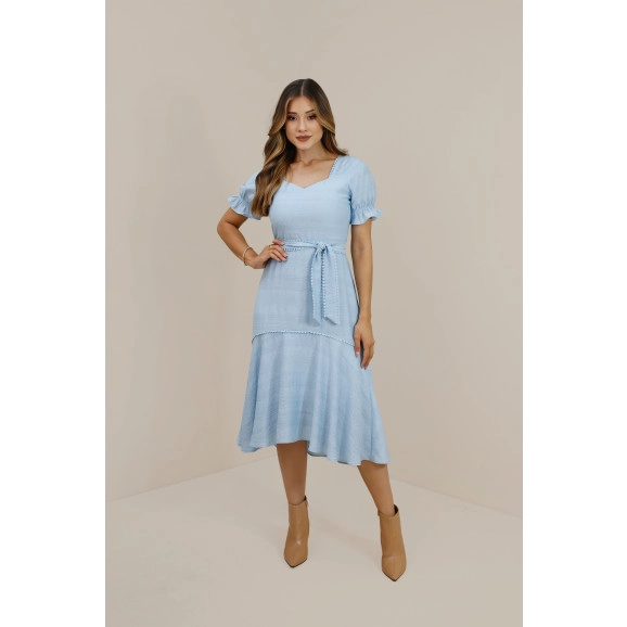 Vestido Mariana Em Viscose Com Poliamida Azul Nitido