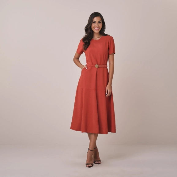 Vestido Marlene Em Alfaiataria Toscana Telha Tatá Martello