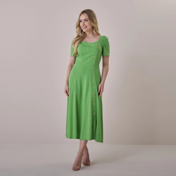 Vestido Maya Em Viscolinho Rayon Verde Tatá Martello