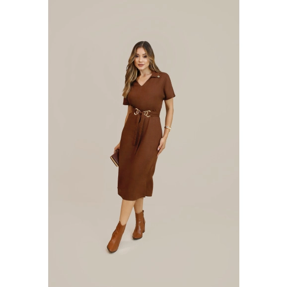 Vestido Mel Em Cambraia De Linho Marrom Nitido
