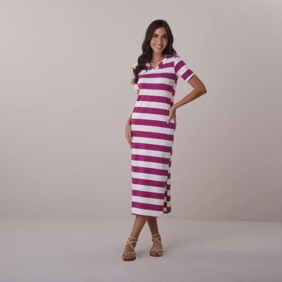 Vestido Mel Em Malha Conforto Uva Listrado Tatá Martello