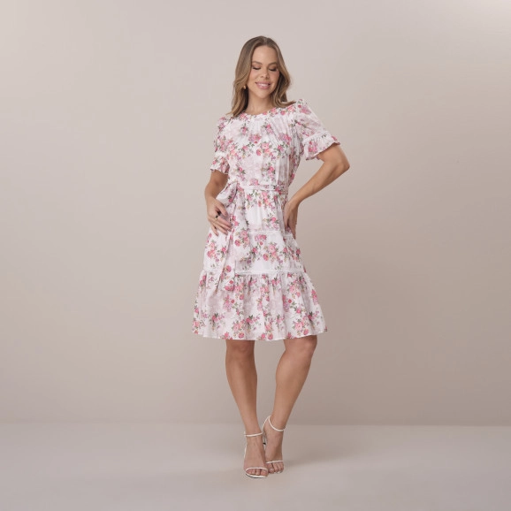 Vestido Melinda Em Crepe Gloss Estampa Exclusiva Off White Tata Martello