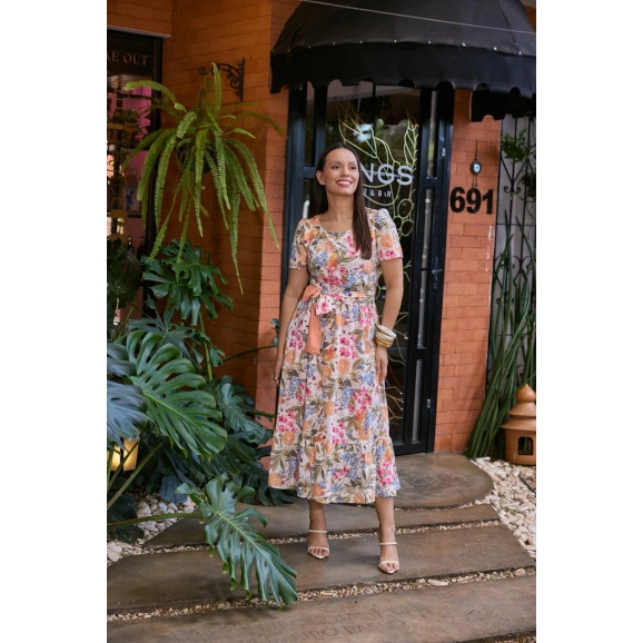 Vestido Melissa Em Toque De Seda Estampado Jany Pim
