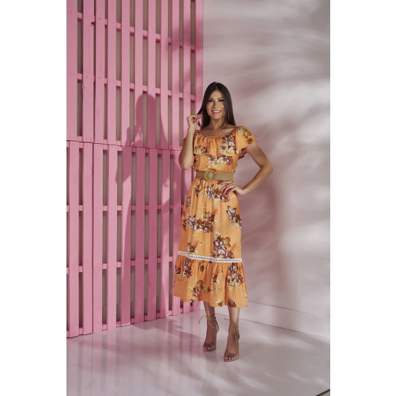 Produto: Vestido Midi Floral Laranja Tata Martello
