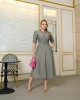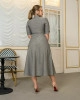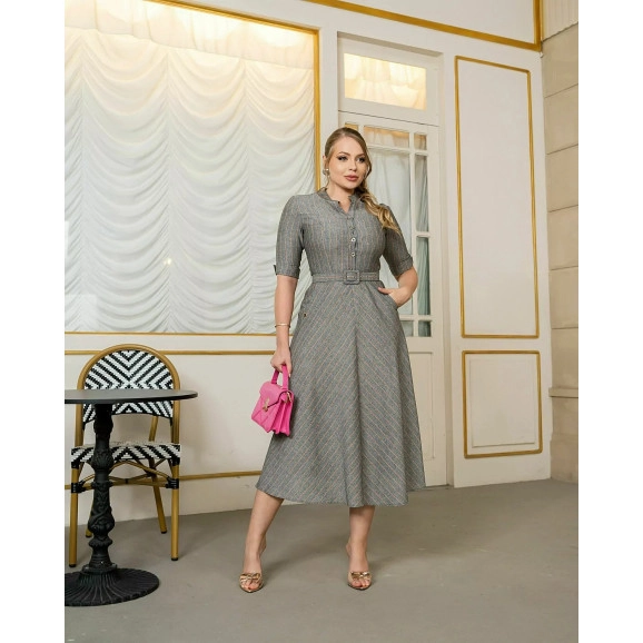 Vestido Midi Lady Like Em Chambrê Risca De Giz Com Cinto Kauly