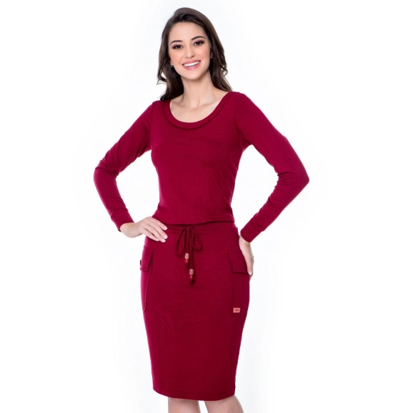 Vestido Midi Moletinho Bordô Hapuk, possui bolso funcional, detalhe em amarração na cintura. Composição do tecido 94%Viscose 6%Elastano, forro: 100%Poliester. Dress versátil, super elegante e confortável!