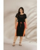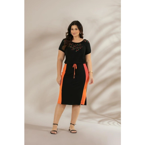 Vestido Midi Plus Size Preto Com Bordado No Decote Hadaza