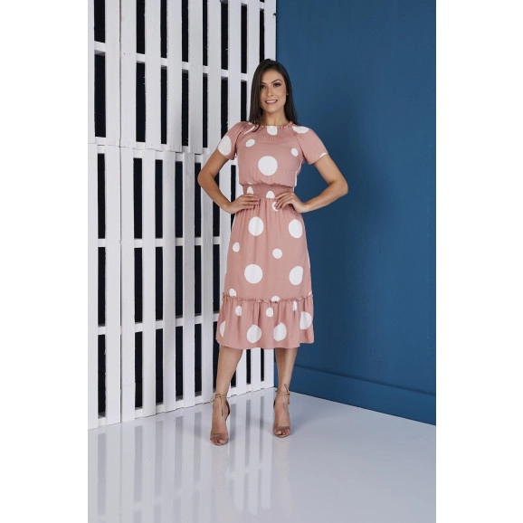 Produto: Vestido Midi Poá Rosa Tatá Martello