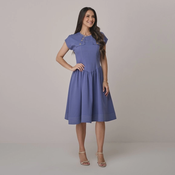 Vestido Nagela Em Twill Rayon Azul Tata Martello