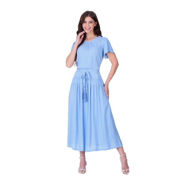 Vestido Naila Em Tecido Plano De Viscose Azul Hapuk