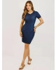 Vestido no tecido Lakes comprimento secretária possui pence frontal e traseira e detalhe de ribana na manga e decote.