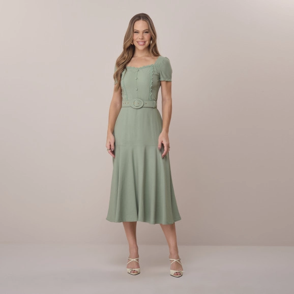 VESTIDO 6479 NATHIELY - TECIDO: ALFAIATARIA KIKI COM CINTO E RENDA - PP AO GG
