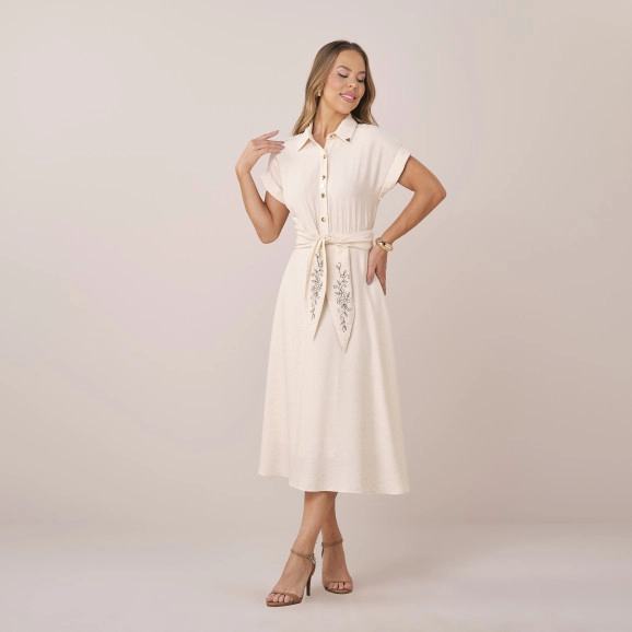 VESTIDO 6159 OLIVIA - TECIDO: LINHO RAYON (BOTÕES FUNCIONAIS E FAIXA COM BORDADO) - PP AO GG