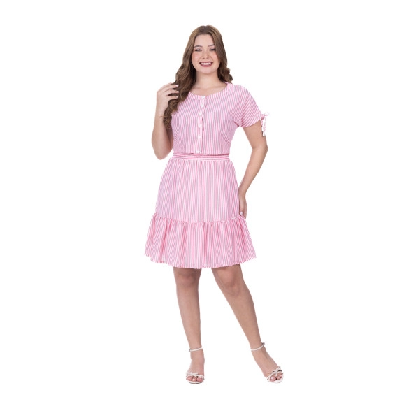 Vestido confeccionado em tecido plano listrado,