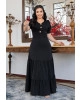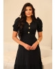 Vestido Pamela Em Crepe Pele de Pêssego Preto Maria Amore