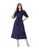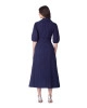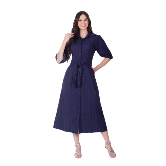 Vestido Pérola Em Tecido Plano Maquinetado Azul Noite Hapuk