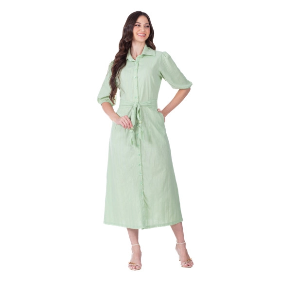 Vestido Pérola Em Tecido Plano Maquinetado Verde Hapuk