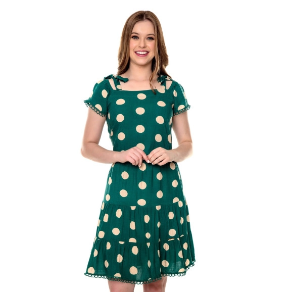 Vestido Poá Detalhe Amarração Verde Hapuk