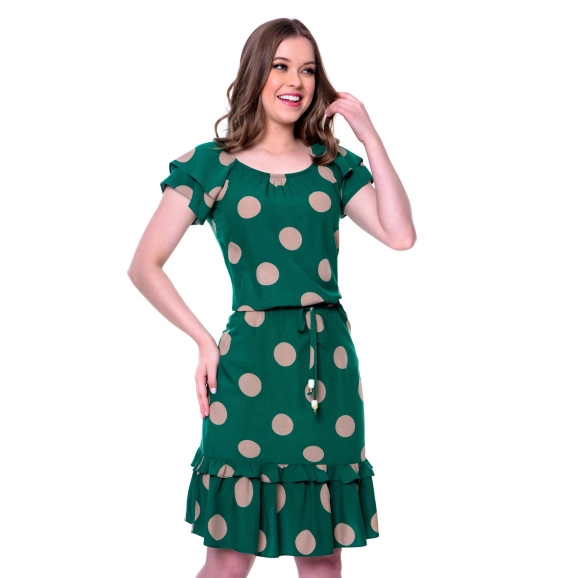 Vestido Poá Verde Hapuk confeccionado em viscose, possui elástico no ombro e cintura, possui babados. Composição: 100% Viscose Forro: 100% Poliester. Vestidos super estiloso e levinho, daqueles que você não vai querer tirar mais do corpo!