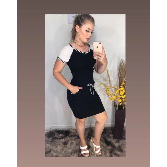 Vestido Canelado Preto com Elátisco na Cintura, possui bolsos na lateral. Composição: 96% Viscose, 4%Elastano. Vestido super confortável, ideal para usar com tênis ou rasteirinhas.