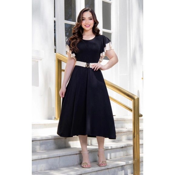 Vestido Rafaela Em Tecido Malha Premium Preto Maria Amore