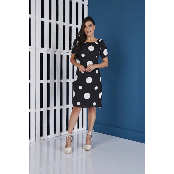 Produto: Vestido Recorte Poá Preto Tatá Martello