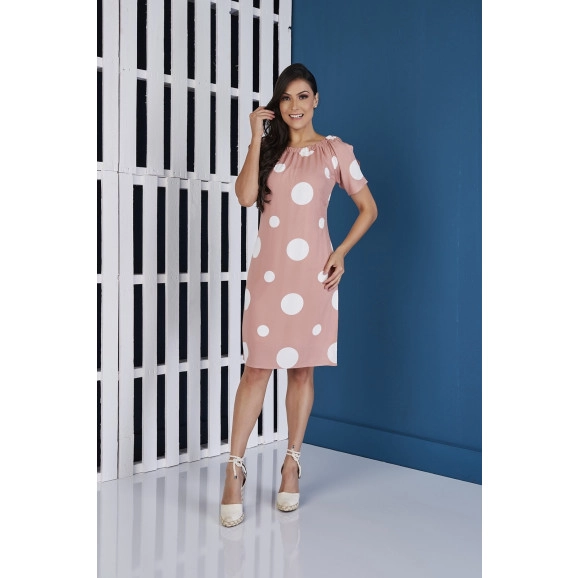 Produto: Vestido Recorte Poá Rosa Tatá Martello