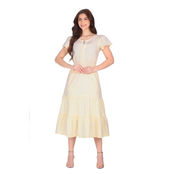 Vestido Regiane Em Tecido Plano Listrado Amarelo Hapuk