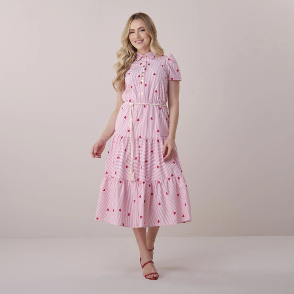 Vestido Renata Em Stripe Bordado Coração Rosa Tata Martello