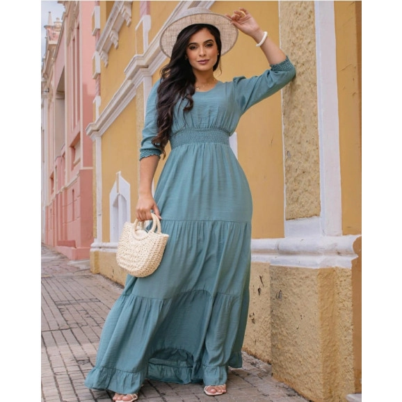 Vestido Renata Em Viscose Com Lastex E Três Marias Verde Maria Amore