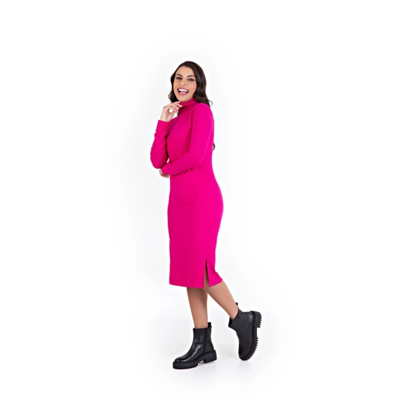 Vestido Renata Pink Em Malha Canelada Com Gola Alta Hapuk