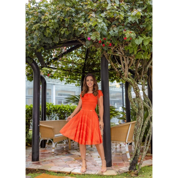 Detalhe: Vestido em renda com babado possui fechamento em zíper lateral. Look bem verãozinho para você curtir com a familia!