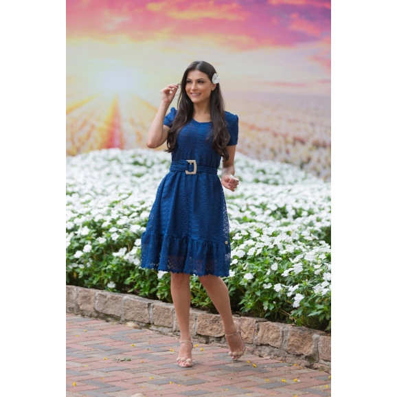 Produto: Vestido Renda com Faixa Azul Maria Amore