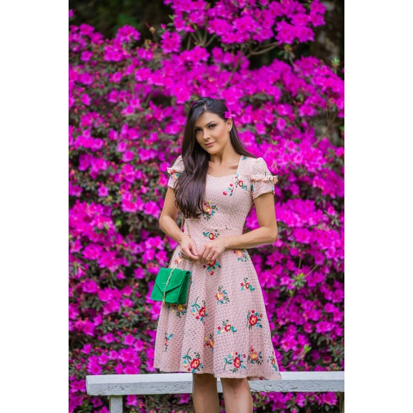 Detalhe: vestido em renda godê. Dress elegante, charmoso, ideal para aquele evento mais especial!