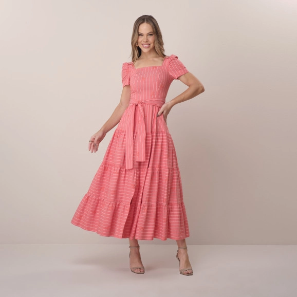 VESTIDO 6239 ROBERTA - TECIDO: TRICOLINE LISTRADA COM BORDADO - PP AO GG