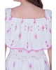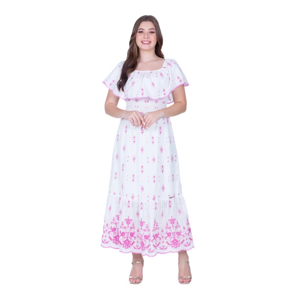 Vestido confeccionado em tecido plano laise, decote com elástico interno, corpo em lastex frente e costas e possui forro.
