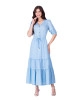 Vestido Roseli Em Tecido Plano Maquinetado Azul Hapuk