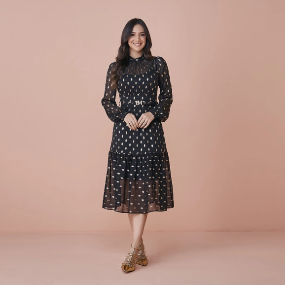 VESTIDO 4661 SABRINA - TECIDO: CREPE SILKYFOIL (CINTO EXCLUSIVO ACOMPANHA)