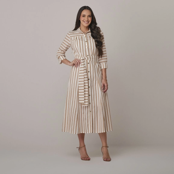 Vestido Safira Em Algodão Listrado Bege Tata Martello
