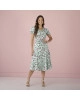 Vestido Tatá Martello Samara. Confeccionado na Viscose, decote redondo com amarração, manga curta com elástico, elástico na cintura, modelagem evasê saia três Marias, forrado. Produzido em duas variantes de cor.