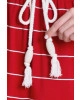 O vestido Samira foi confeccionado em malha listrada, elástico interno na cintura e cordão fixo, bolsos funcionais e não possui forro