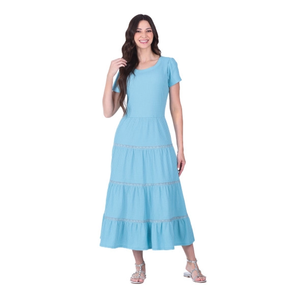 Vestido Sara Em Malha Texturizada Azul Hapuk