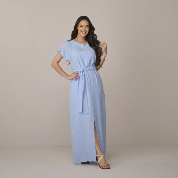 Vestido Sasha Em Viscolinho Azul Tata Martello